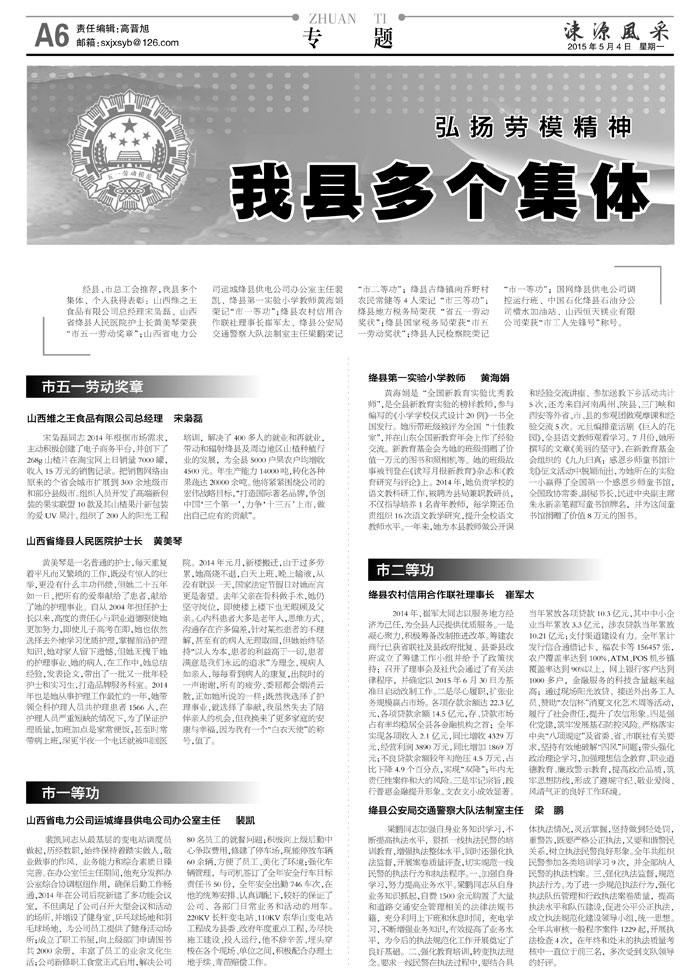 《涑源风采》绛县社区报 贴近,决定影响力 涑源传媒编辑出版 微信:suyuanfengcai 邮箱:sxjxsyb@126.com 电话:6523423