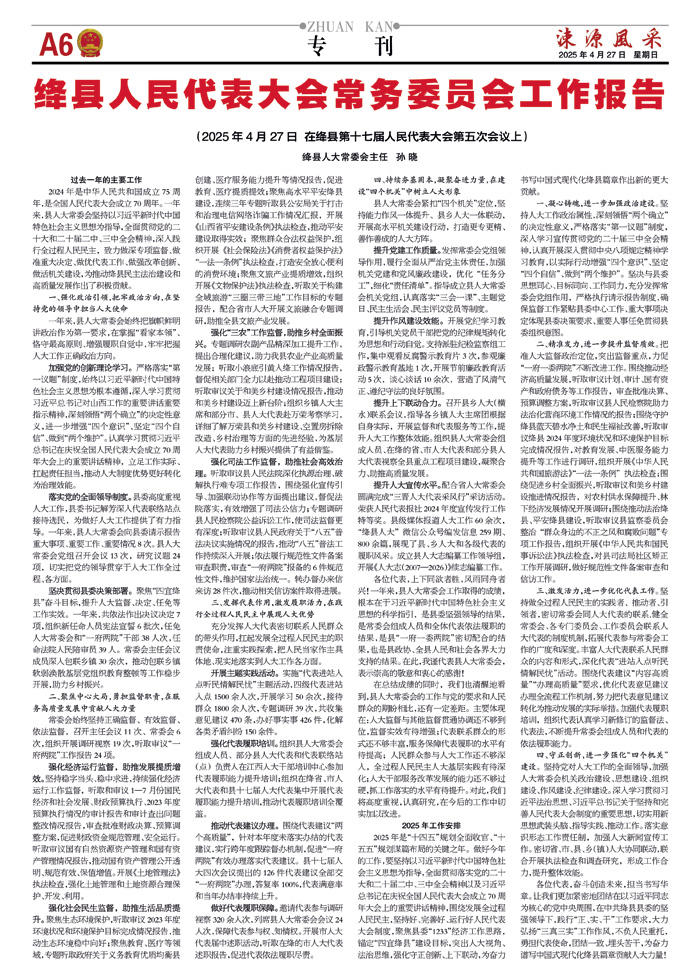 绛县人民代表大会常务委员会工作报告