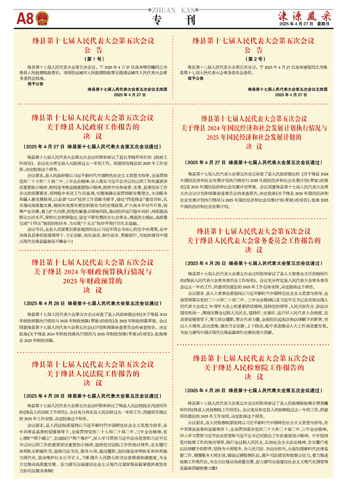 绛县第十七届人民代表大会第四次会议决议与报告