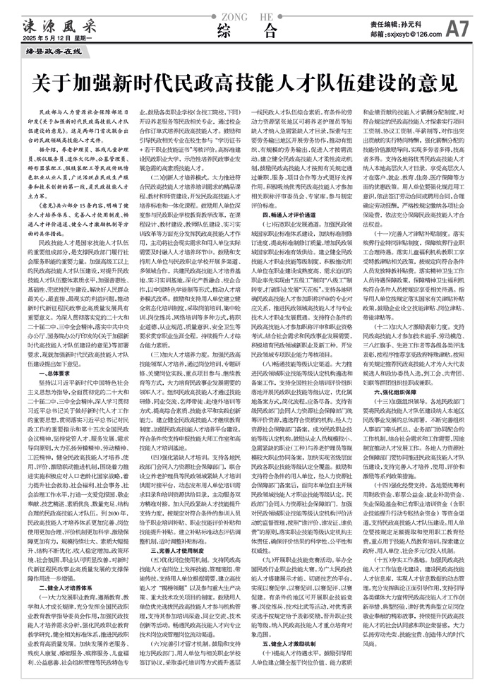 关于加强新时代民政高技能人才队伍建设的意见