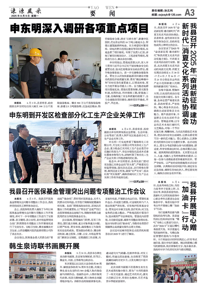 本报讯 6月6日,县委常委、政府副县长申东明带领县应急管理、生态环境、公安等部门负责人到开发区检查部分化工生产企业关停工作。