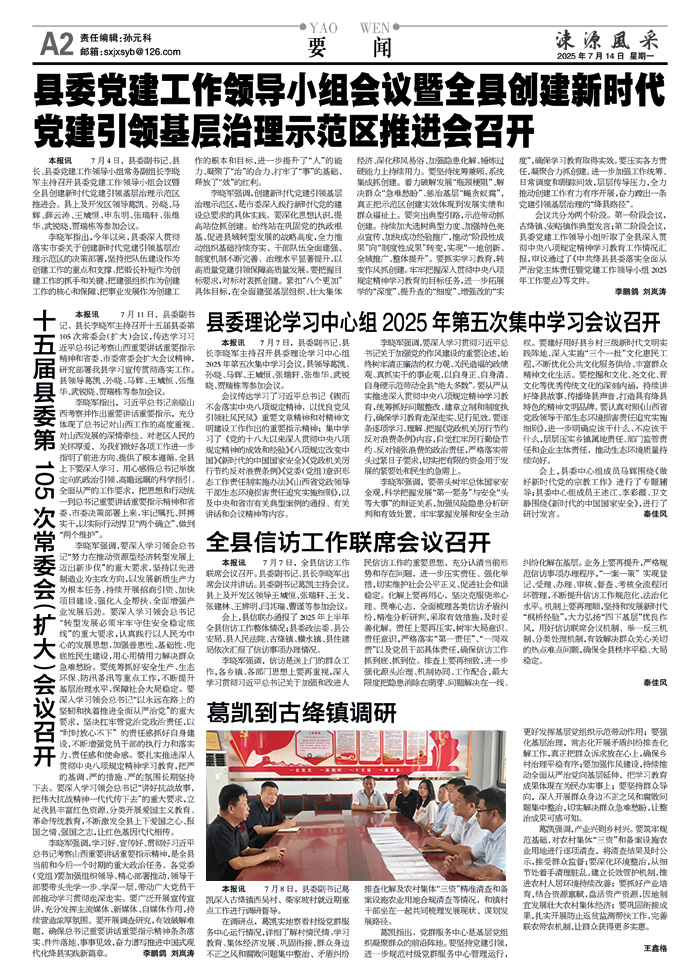 会议共分为两个阶段。第一阶段会议,古绛镇、安峪镇作典型发言;第二阶段会议,县委党建工作领导小组听取了全县深入贯彻中央八项规定精神学习教育工作情况汇报,审议通过了《中共绛县县委落实全面从严治党主体责任暨党建工作领导小组2025年工作要点》等文件。