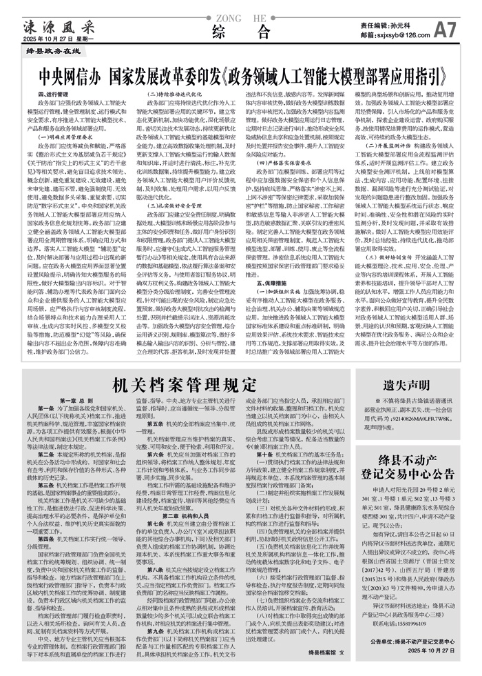 中央网信办 国家发展改革委印发《政务领域人工智能大模型部署应用指引》