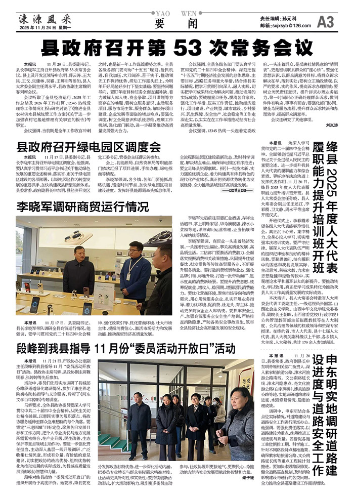李晓军强调,各乡镇、各部门要抢抓战略机遇、锚定时间节点,加快绿电园区项目建设进度,发挥好县能源局牵头抓总作用,全流程跟进园区建设最新动态,及时科学调度,解决堵点难点,确保绿电园区有序推进;要立足绛县资源禀赋,招引一批技术新、实力强的优质企业,着力构建具有绛县特色的现代化产业体系,真正把资源优势转化为发展胜势,全力推动县域经济高质量发展。