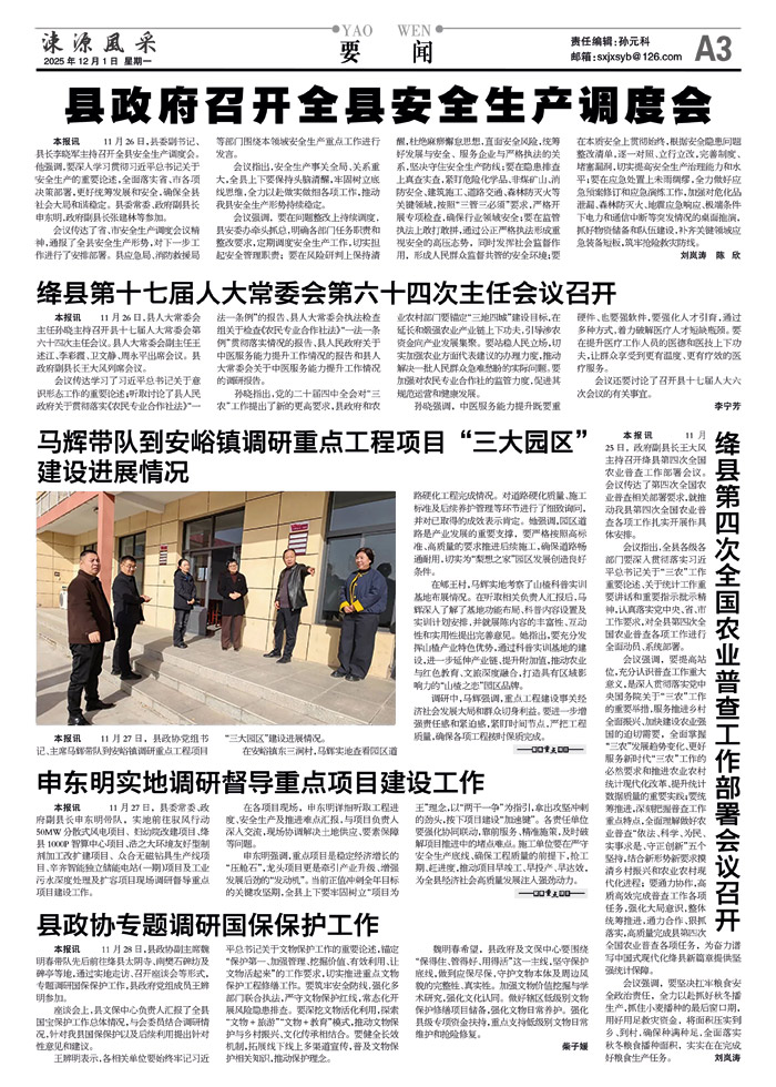 孙晓指出,党的二十届四中全会对“三农”工作提出了新的更高要求,县政府和农业农村部门要锚定“三地四城”建设目标,在延长和煅强农业产业链上下功夫,引导涉农资金向产业发展集聚。要站稳人民立场,切实加强农业方面代表建议的办理力度,推动解决一批人民群众急难愁盼的实际问题。要加强对农民专业合作社的监管力度,促进其规范运营和健康发展。