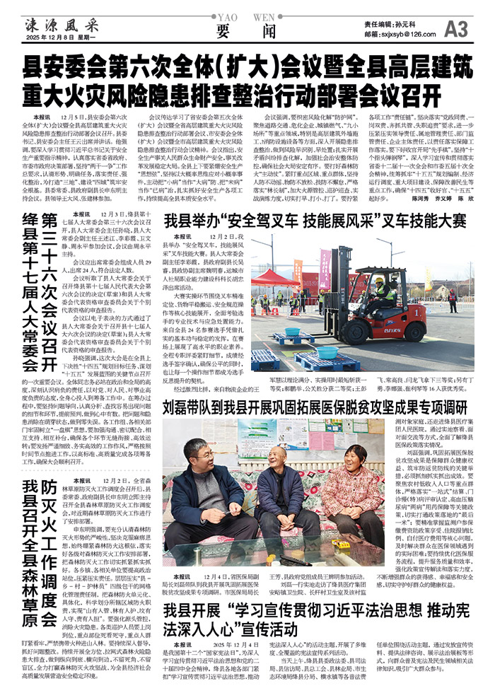 孙晓强调,这次大会是在全县上下决胜“十四五”规划目标任务、谋划“十五五”发展蓝图的关键节点召开的一次重要会议。全体同志务必站在政治和全局的高度,深刻认识肩负的责任,以对党、对人民、对事业高度负责的态度,全身心投入到筹备工作中。在筹办过程中,要坚持问题导向,认真分析、查找容易出现问题的细节和环节,提前预判,做到心中有数。把问题和隐患消除在萌芽状态,做到零失误。各工作组、各相关部门牢固树立“一盘棋”思想,要加强沟通、密切配合,相互支持、相互补台,确保各个环节无缝衔接、高效运转;要发扬严谨细致、务实高效的工作作风,严格按照时间节点推进工作,以高标准、高质量完成各项筹备工作,确保大会顺利召开。