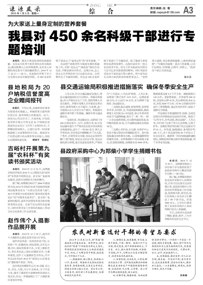 《涑源风采》绛县社区报 集纳社区新闻 助力美丽生活 涑源传媒编辑出版 微信:suyuanfengcai 邮箱:sxjxsyb@126.com 电话:6523423