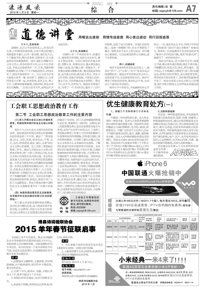《涑源风采》绛县社区报 集纳社区新闻 助力美丽生活 涑源传媒编辑出版 微信:suyuanfengcai 邮箱:sxjxsyb@126.com 电话:6523423