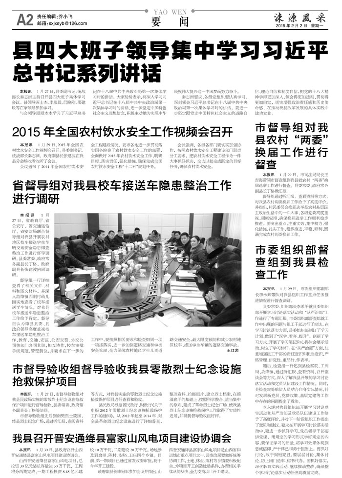 《涑源风采》绛县社区报 贴近,决定影响力 涑源传媒编辑出版 微信:suyuanfengcai 邮箱:sxjxsyb@126.com 电话:6523423
