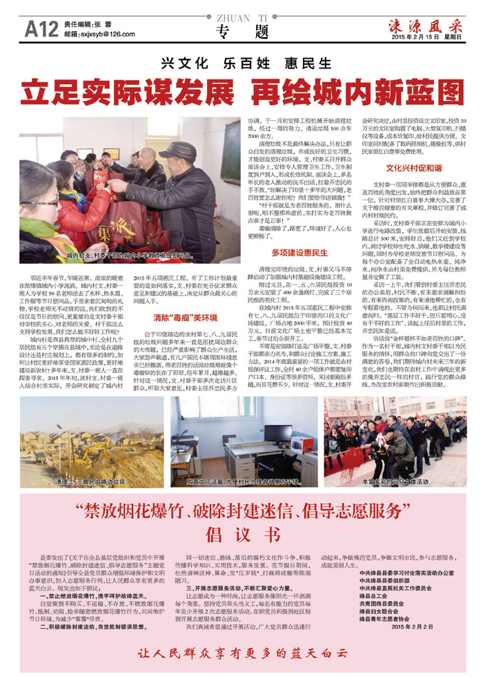 《涑源风采》绛县社区报 贴近,决定影响力 涑源传媒编辑出版 微信:suyuanfengcai 邮箱:sxjxsyb@126.com 电话:6523423
