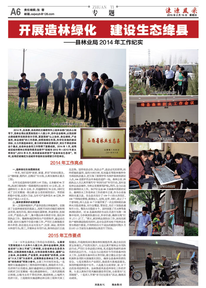 开展造林绿化 建设生态绛县——县林业局2014年工作纪实