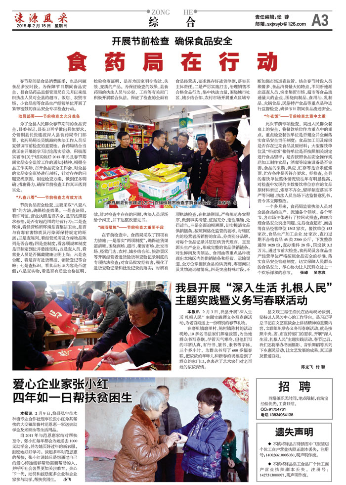 我县开展“深入生活 扎根人民”主题实践暨义务写春联活动