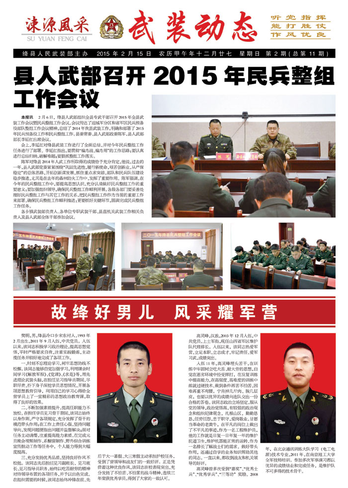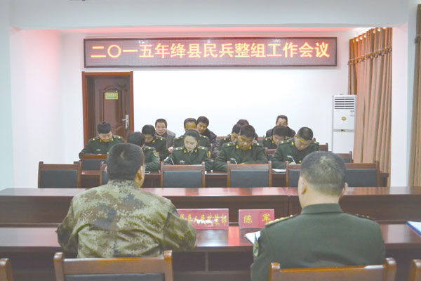 本报讯 2月6日,绛县人武部组织全县专武干部召开2015年全县武装工作会议暨民兵整组工作会议。会议传达了运城军分区和省军区民兵预备役部队整组工作会议精神,总结了2014年我县武装工作,明确和部署了2015年民兵预备役工作和民兵整组工作。县委常委、县人武部政委陈军,县人武部部长李延红出席会议。
