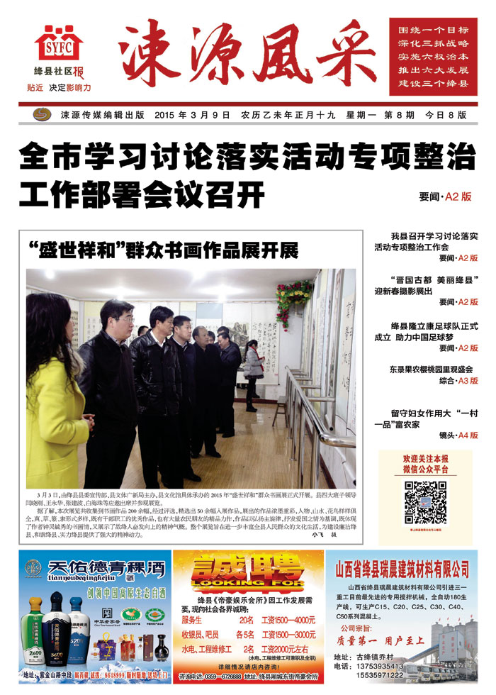 《涑源风采》绛县社区报 贴近,决定影响力 涑源传媒编辑出版 微信:suyuanfengcai 邮箱:sxjxsyb@126.com 电话:6523423
