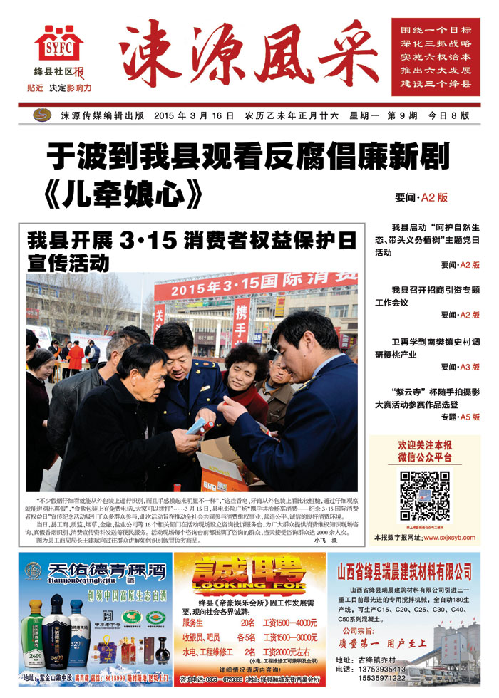 《涑源风采》绛县社区报 贴近,决定影响力 涑源传媒编辑出版 微信:suyuanfengcai 邮箱:sxjxsyb@126.com 电话:6523423
