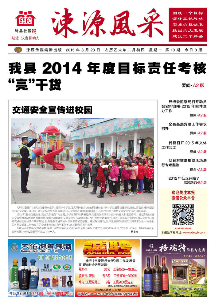 《涑源风采》绛县社区报 贴近,决定影响力 涑源传媒编辑出版 微信:suyuanfengcai 邮箱:sxjxsyb@126.com 电话:6523423