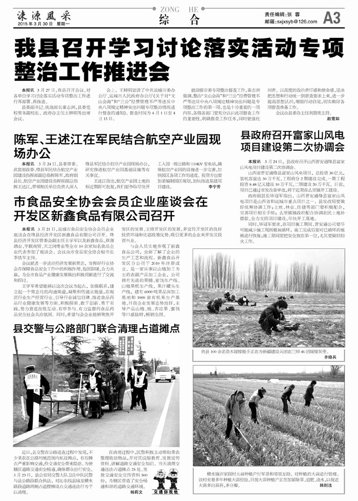 会上,王辨明宣读了中共运城市委办公厅、运城市人民政府办公厅《关于对"文山会海"和"三公"经费管理不严等违反中央八项规定精神突出问题专项整治情况进行督查的通知》。督查时间为4月1日至4月15日。