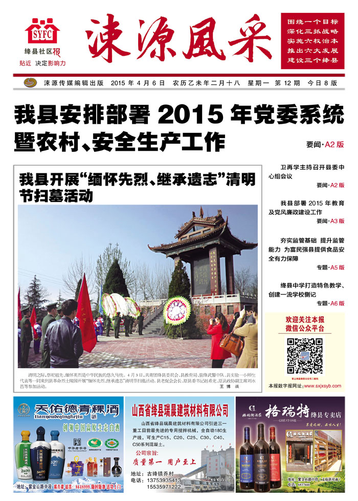 《涑源风采》绛县社区报 贴近,决定影响力 涑源传媒编辑出版 微信:suyuanfengcai 邮箱:sxjxsyb@126.com 电话:6523423