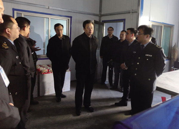县委书记、县长卫再学,县人大主任苏士杰在食品生产企业指导食品安全工作
