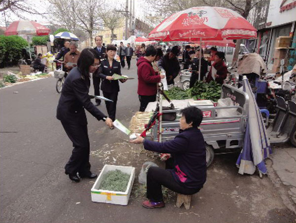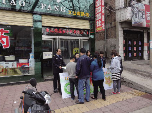 食药监局工作人员在“3·31”投诉举报日走上街头宣传