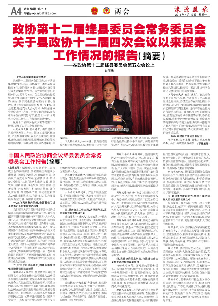 政协第十二届绛县委员会常务委员会关于县政协十二届四次会议以来提案工作情况的报告(摘要)