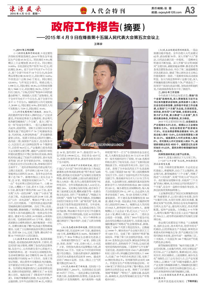政府工作报告(摘要)——2015年4月9日在绛县第十五届人民代表大会第五次会议上