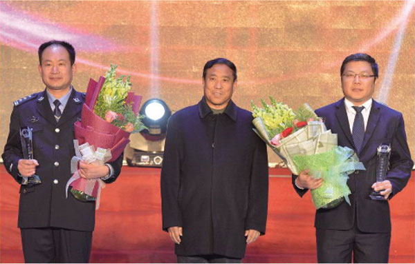 原县人大主任荆军武为县公安局、联通公司颁奖