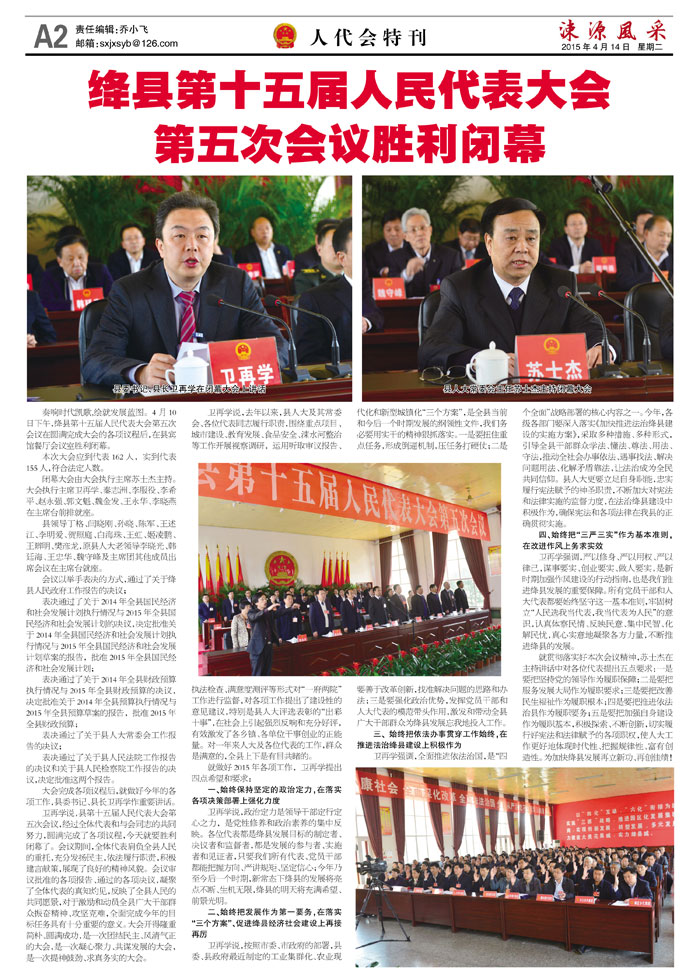 绛县第十五届人民代表大会第五次会议胜利闭幕