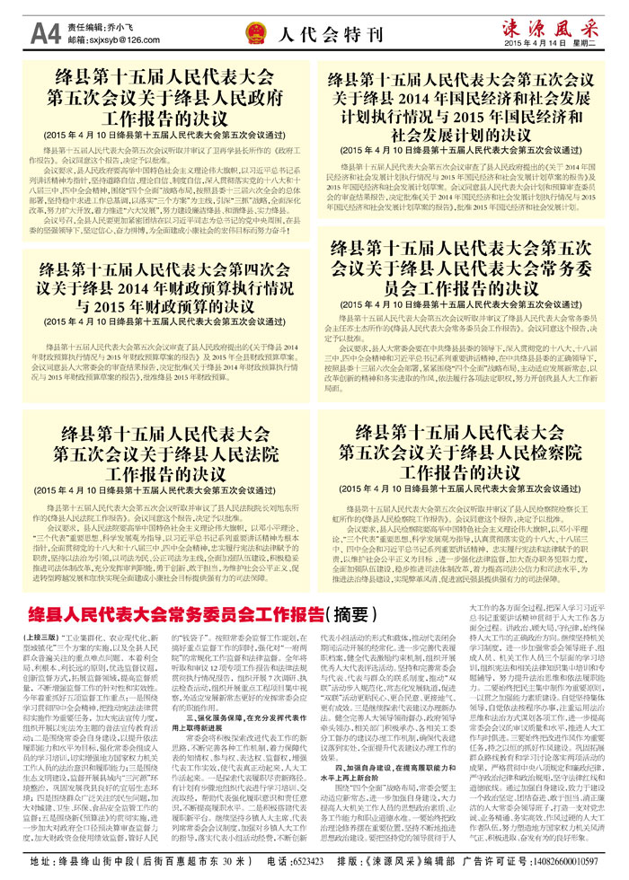 《涑源风采》绛县社区报 贴近,决定影响力 涑源传媒编辑出版 微信:suyuanfengcai 邮箱:sxjxsyb@126.com 电话:6523423