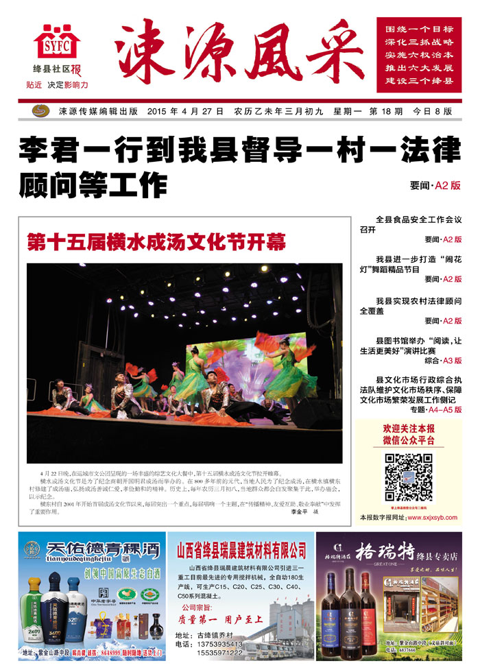 《涑源风采》绛县社区报 贴近,决定影响力 涑源传媒编辑出版 微信:suyuanfengcai 邮箱:sxjxsyb@126.com 电话:6523423