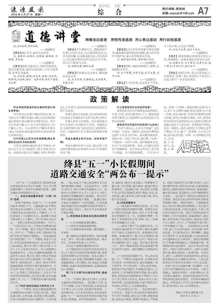 《涑源风采》绛县社区报 贴近,决定影响力 涑源传媒编辑出版 微信:suyuanfengcai 邮箱:sxjxsyb@126.com 电话:6523423
