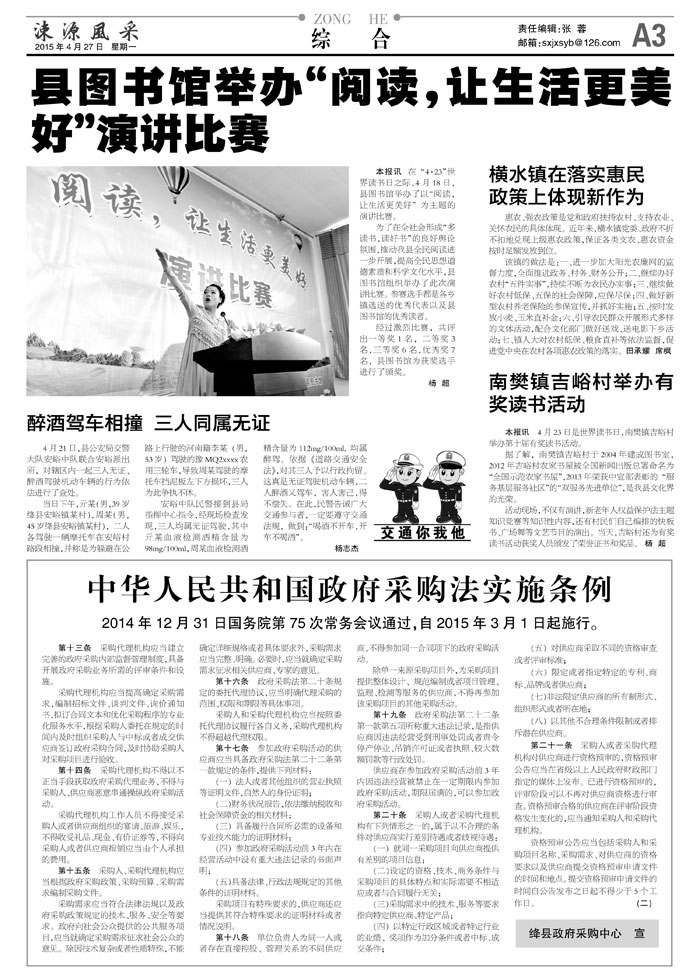 本报讯 在"4·23"世界读书日之际,4月18日,县图书馆举办了以"阅读,让生活更美好"为主题的演讲比赛。