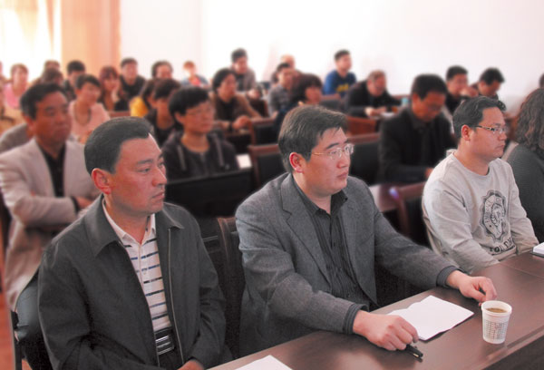都俊杰(左)出席县文化市场行政综合执法队专题会议。