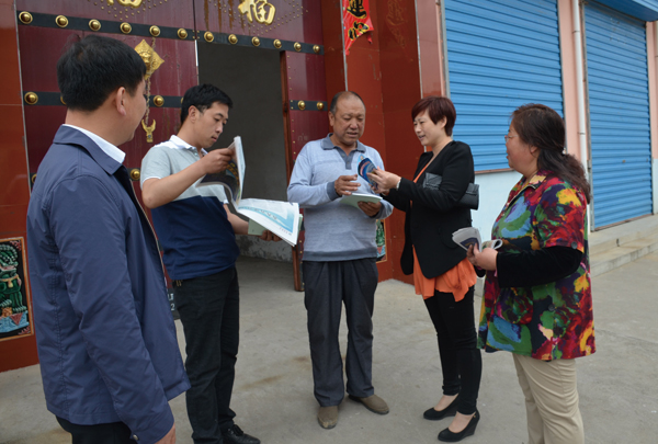 图为县地震局工作人员在磨里镇磨里村为村民讲解防震减灾知识。