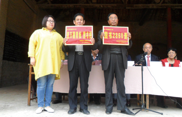 当天,该村村民,现任中国扶贫开发总公司董事长黄勇嘉先生也为郇王小学捐赠了2860册图书。