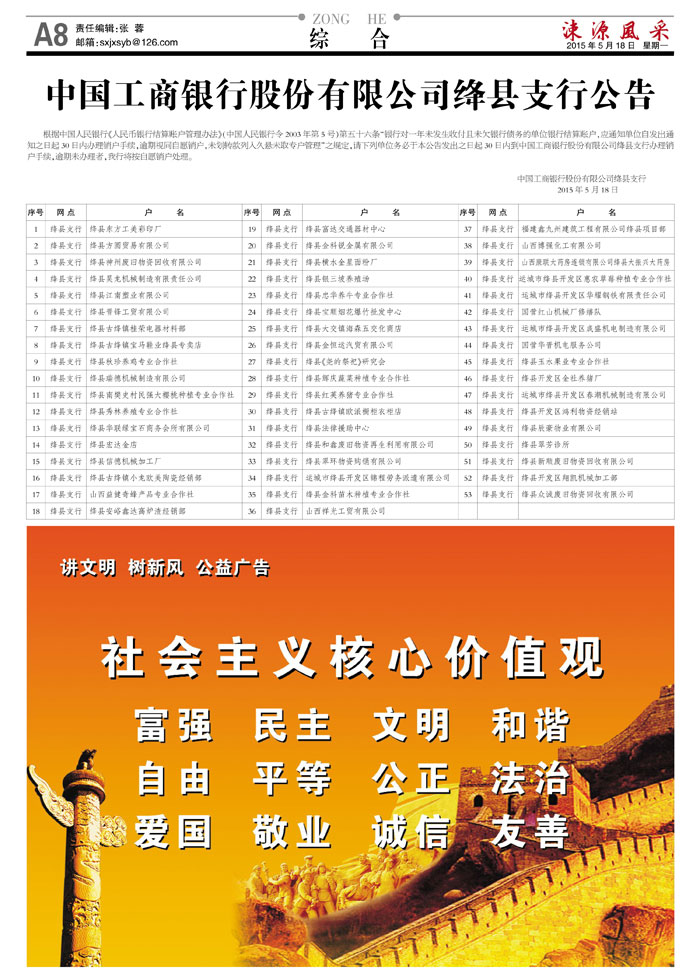 《涑源风采》绛县社区报 贴近,决定影响力 涑源传媒编辑出版 微信:suyuanfengcai 邮箱:sxjxsyb@126.com 电话:6523423