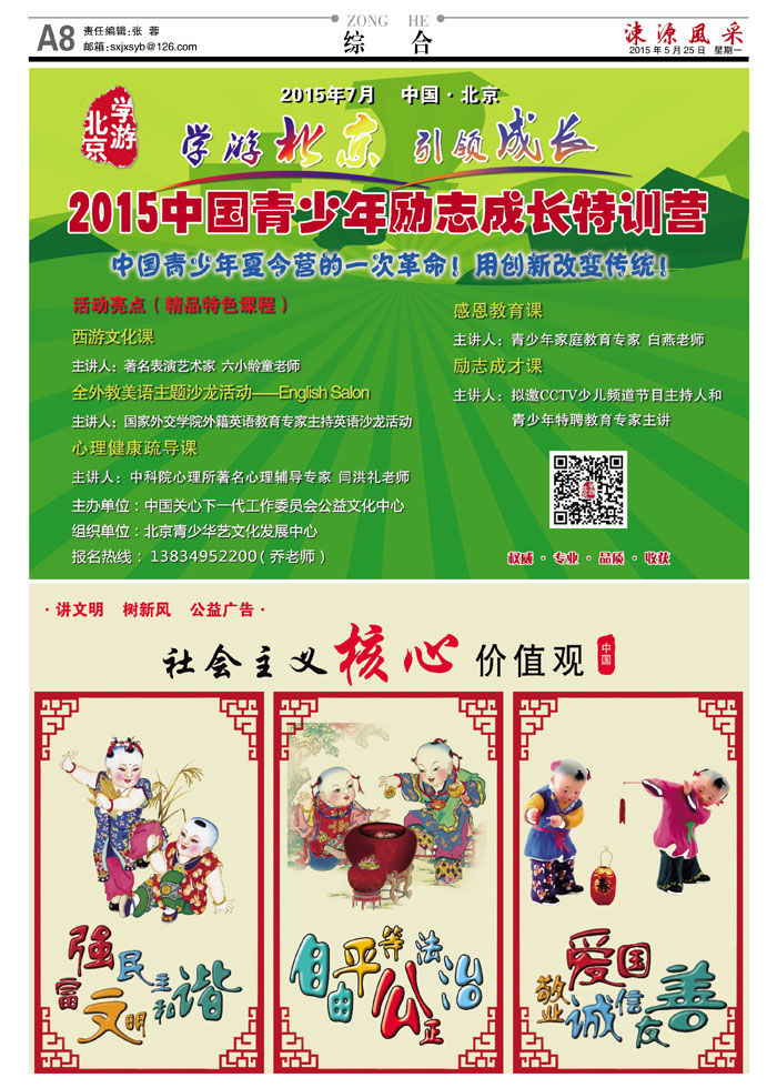 【广告】学游北京 引领成长 2015年中国青少年励志成长特训营