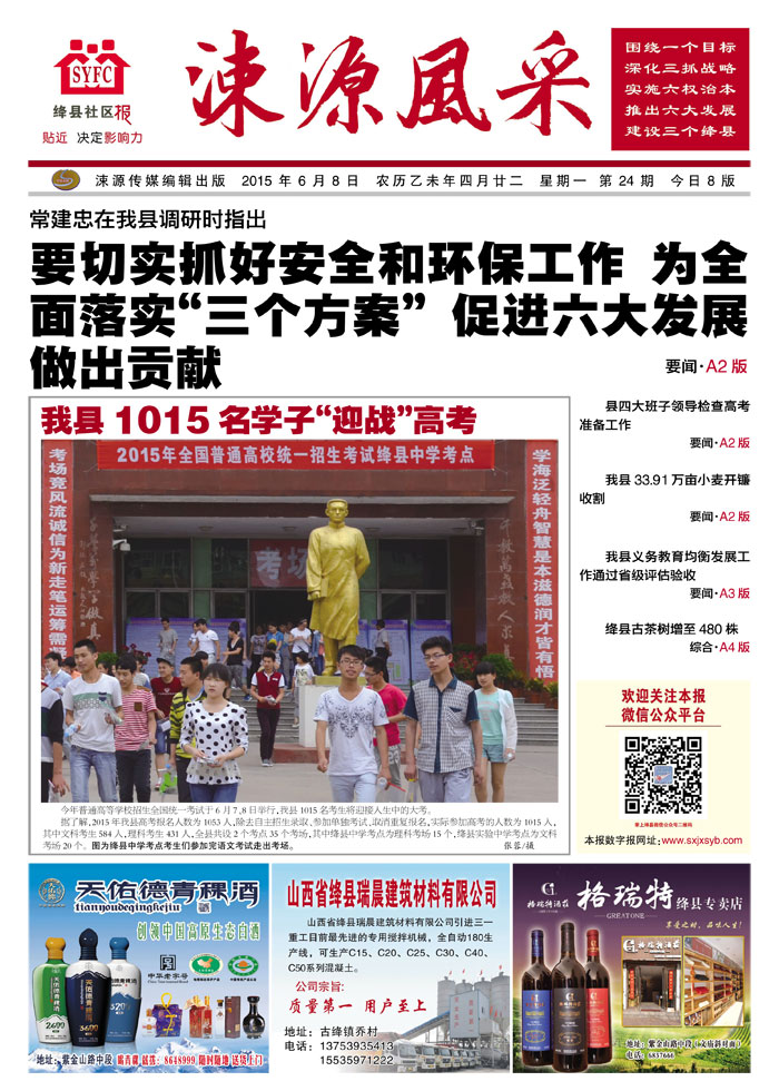 《涑源风采》绛县社区报 贴近,决定影响力 涑源传媒编辑出版 微信:suyuanfengcai 邮箱:sxjxsyb@126.com 电话:6523423