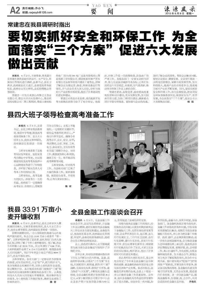 常建忠在我县调研时指出要切实抓好安全和环保工作 为全面落实"三个方案" 促进六大发展做出贡献