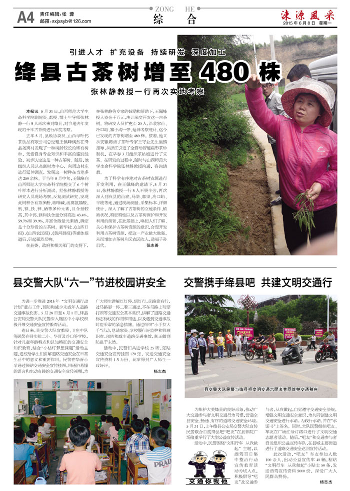 本报讯 5月31日,山西师范大学生命科学院副院长、教授、博士生导师张林静一行5人再次来到绛县,对当地去年发现的千年古茶树进行深度考察。