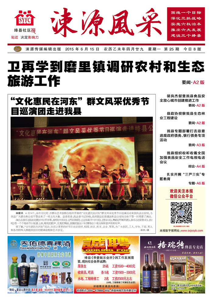 《涑源风采》绛县社区报 贴近,决定影响力 涑源传媒编辑出版 微信:suyuanfengcai 邮箱:sxjxsyb@126.com 电话:6523423