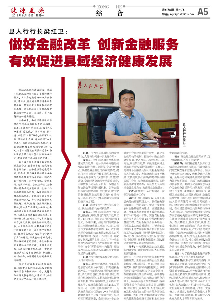 县人行行长梁红卫:做好金融改革 创新金融服务有效促进县域经济健康发展