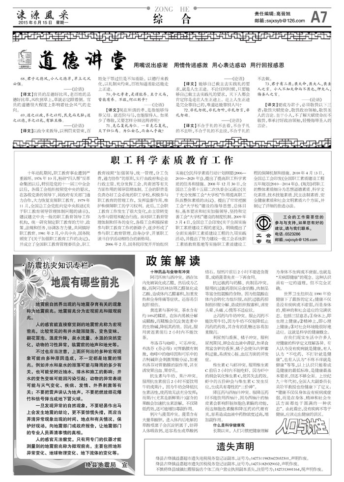 《涑源风采》绛县社区报 贴近,决定影响力 涑源传媒编辑出版 微信:suyuanfengcai 邮箱:sxjxsyb@126.com 电话:6523423