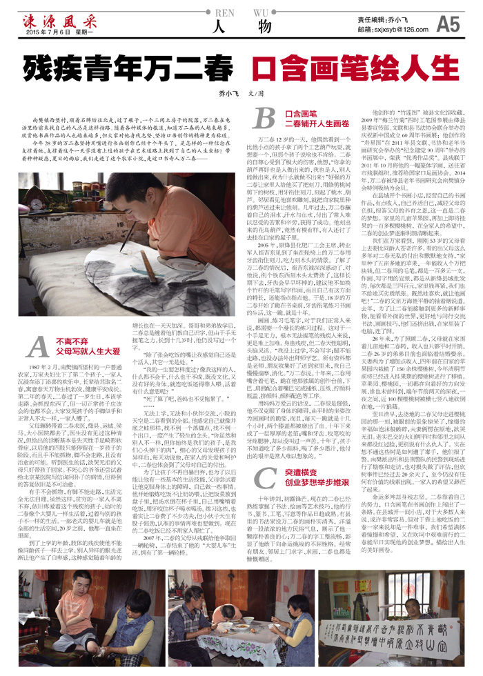 残疾青年万二春 口含画笔绘人生
