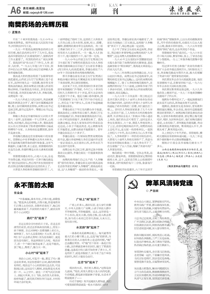 《涑源风采》绛县社区报 贴近,决定影响力 涑源传媒编辑出版 微信:suyuanfengcai 邮箱:sxjxsyb@126.com 电话:6523423