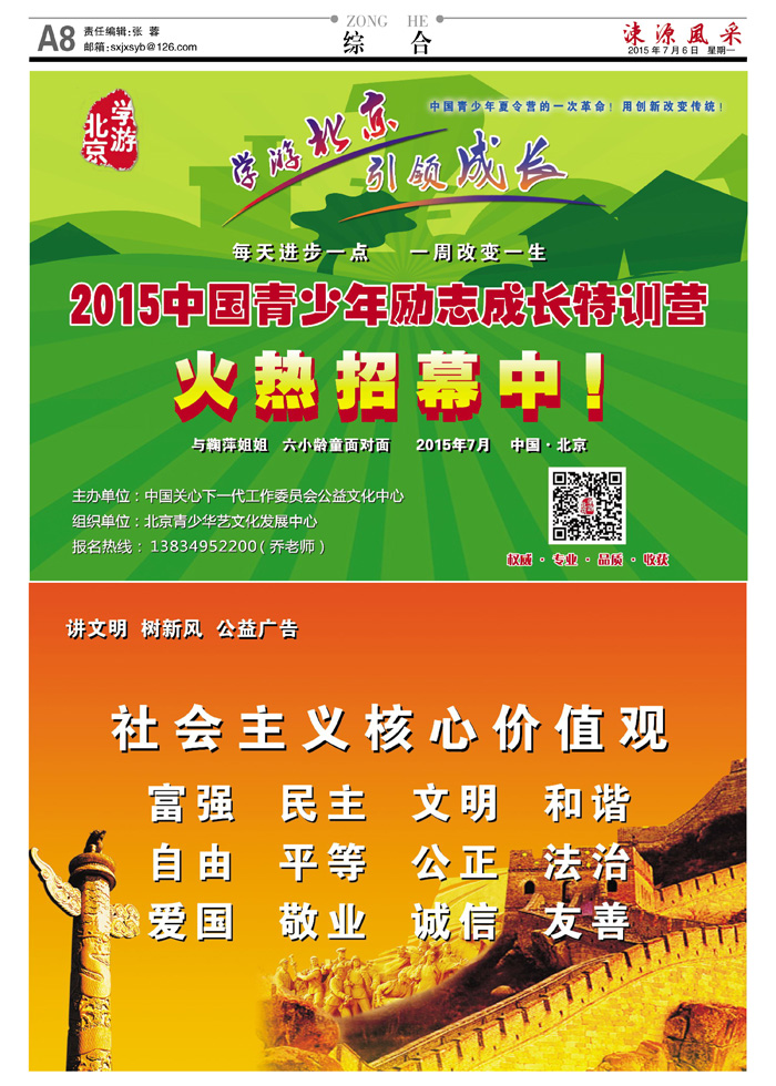 《涑源风采》绛县社区报 贴近,决定影响力 涑源传媒编辑出版 微信:suyuanfengcai 邮箱:sxjxsyb@126.com 电话:6523423