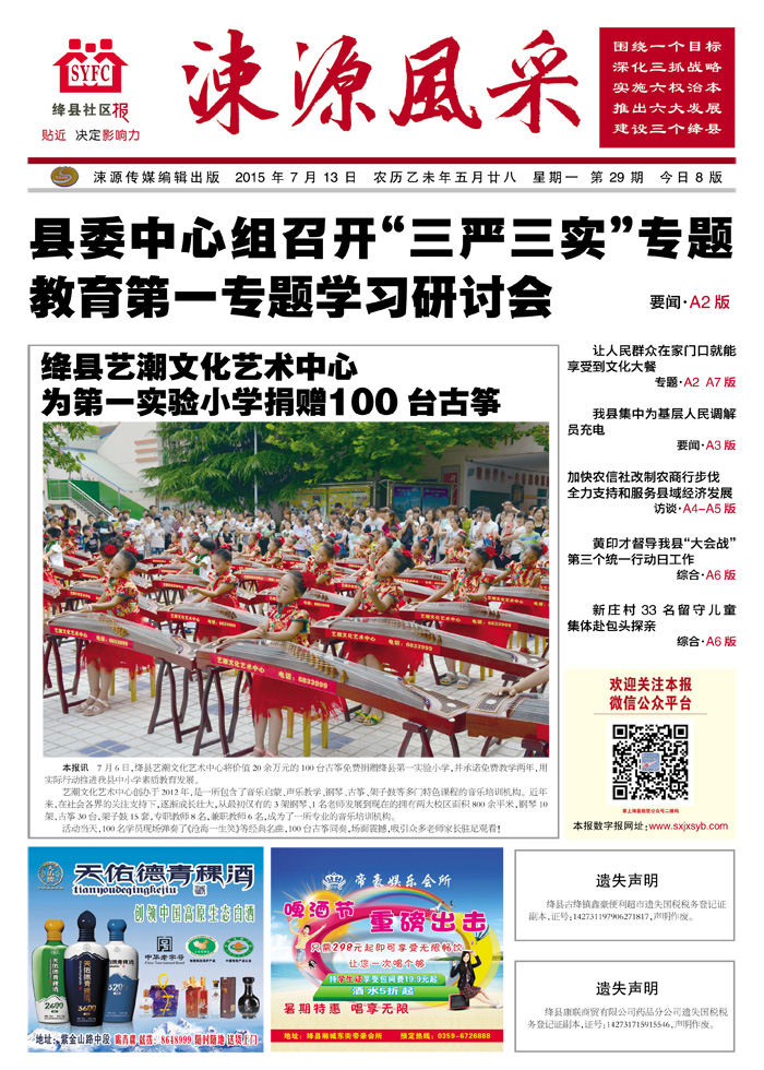《涑源风采》绛县社区报 贴近,决定影响力 涑源传媒编辑出版 微信:suyuanfengcai 邮箱:sxjxsyb@126.com 电话:6523423