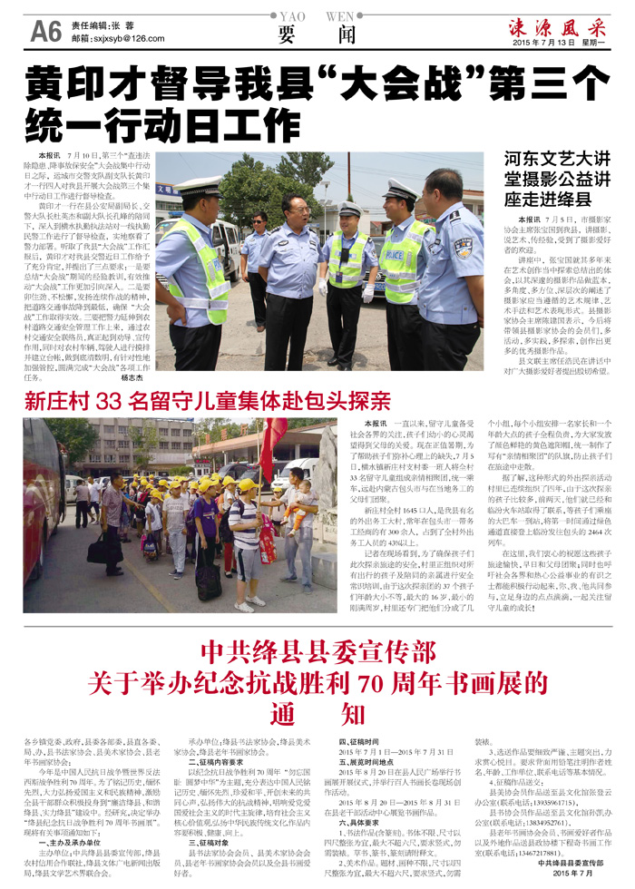 本报讯 一直以来,留守儿童备受社会各界的关注,孩子们幼小的心灵渴望得到父母的关爱。现在正值暑期,为了帮助孩子们弥补心理上的缺失,7月5日,横水镇新庄村支村委一班人将全村33名留守儿童组成亲情相聚团,统一乘车,远赴内蒙古包头市与在当地务工的父母们团聚。