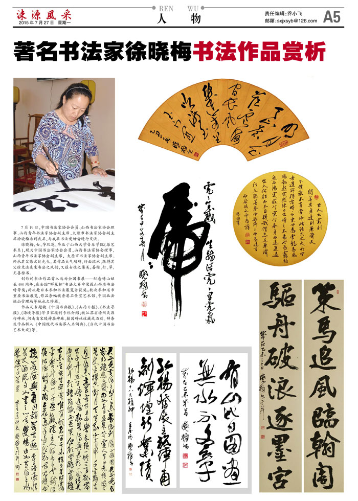 7月19日,中国书法家协会会员、山西书法家协会理事、山西青年书法家协会副主席、太原市书法家协会副主席徐晓梅来到我县,与我县书法爱好者进行交流。
