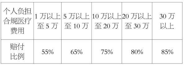 4、二次补偿:经大病保险赔偿后,个人负担的合规费用仍超过5万元以上部分,保险公司年底按50%的比例给予二次补偿("保底补偿"及无责任方意外伤害医疗赔付的案件除外)。